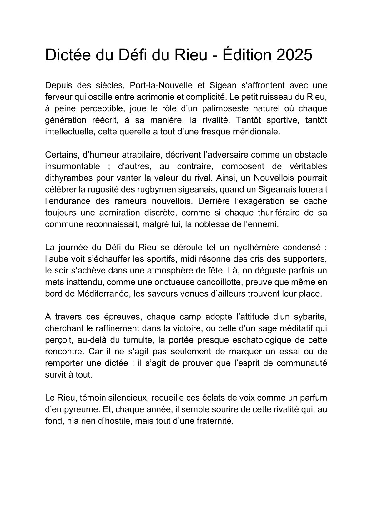 Le défi du Rieu a été remporté par la ville de Port-La Nouvelle lors de sa 1ère édition de 2025.