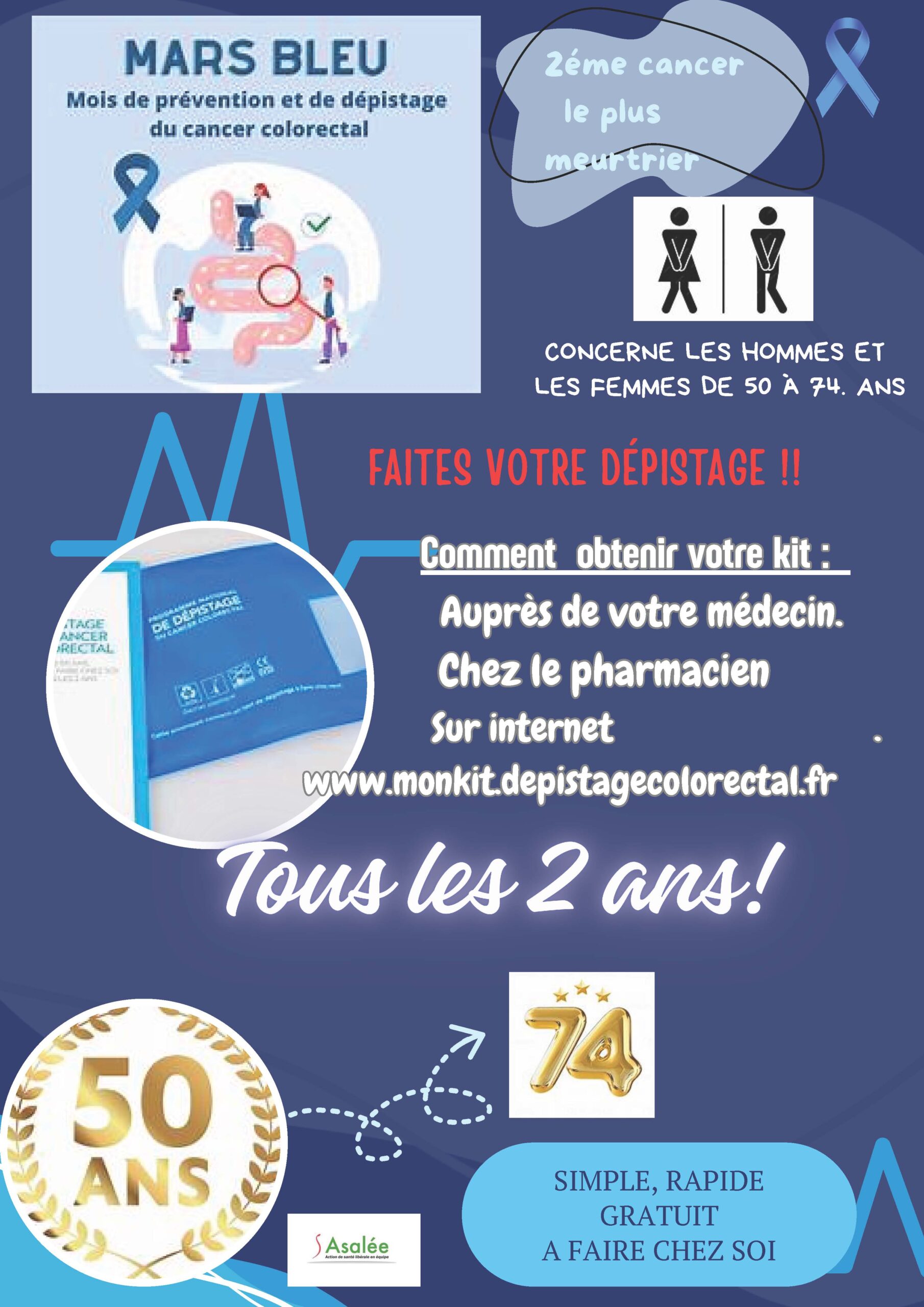 04/03/2026 - In Non classé By Emilie CARAIL ROSSI Comment off Mars Bleu Dépistage du cancer colo-rectal Previous Dépistage